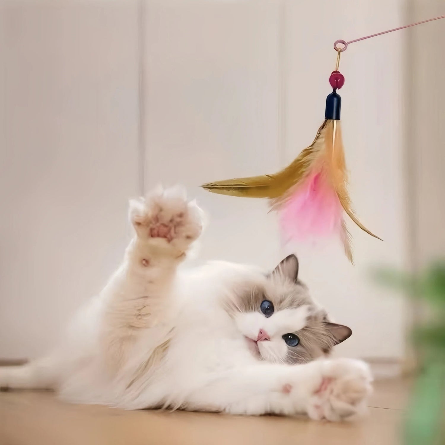 Cat Teaser Wand with 3 Replaceable Bug Feather Heads